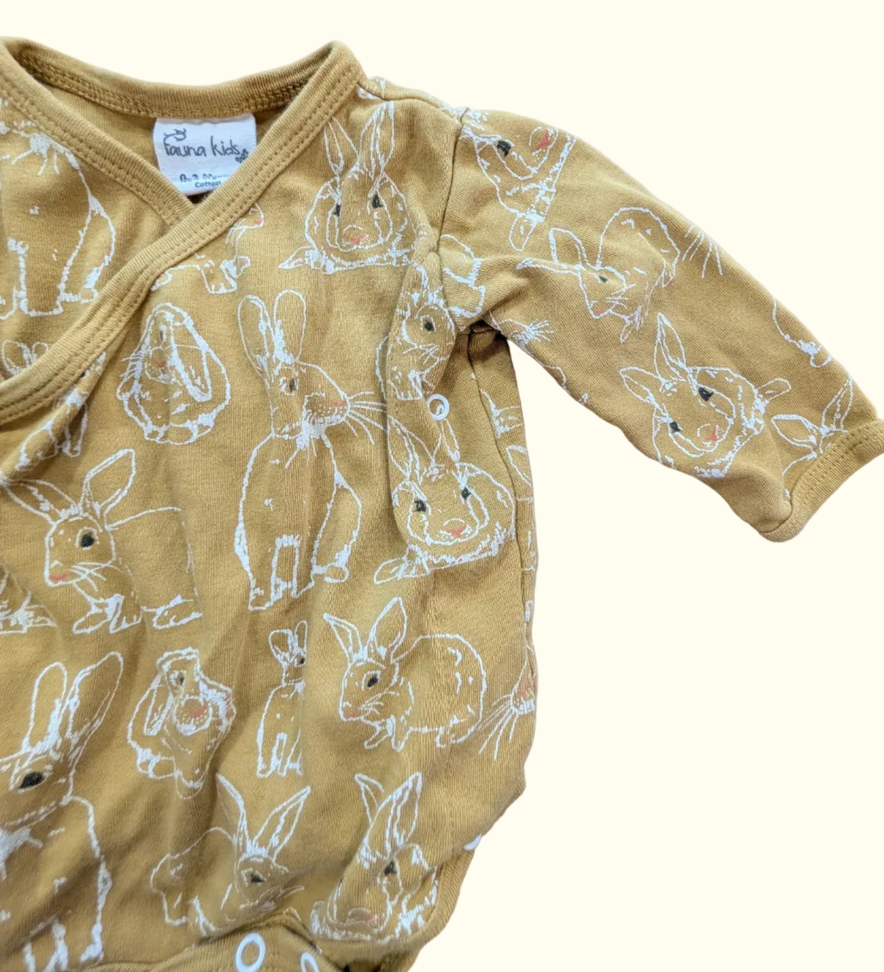 Ochre Bunny Onesie. age 0-3M