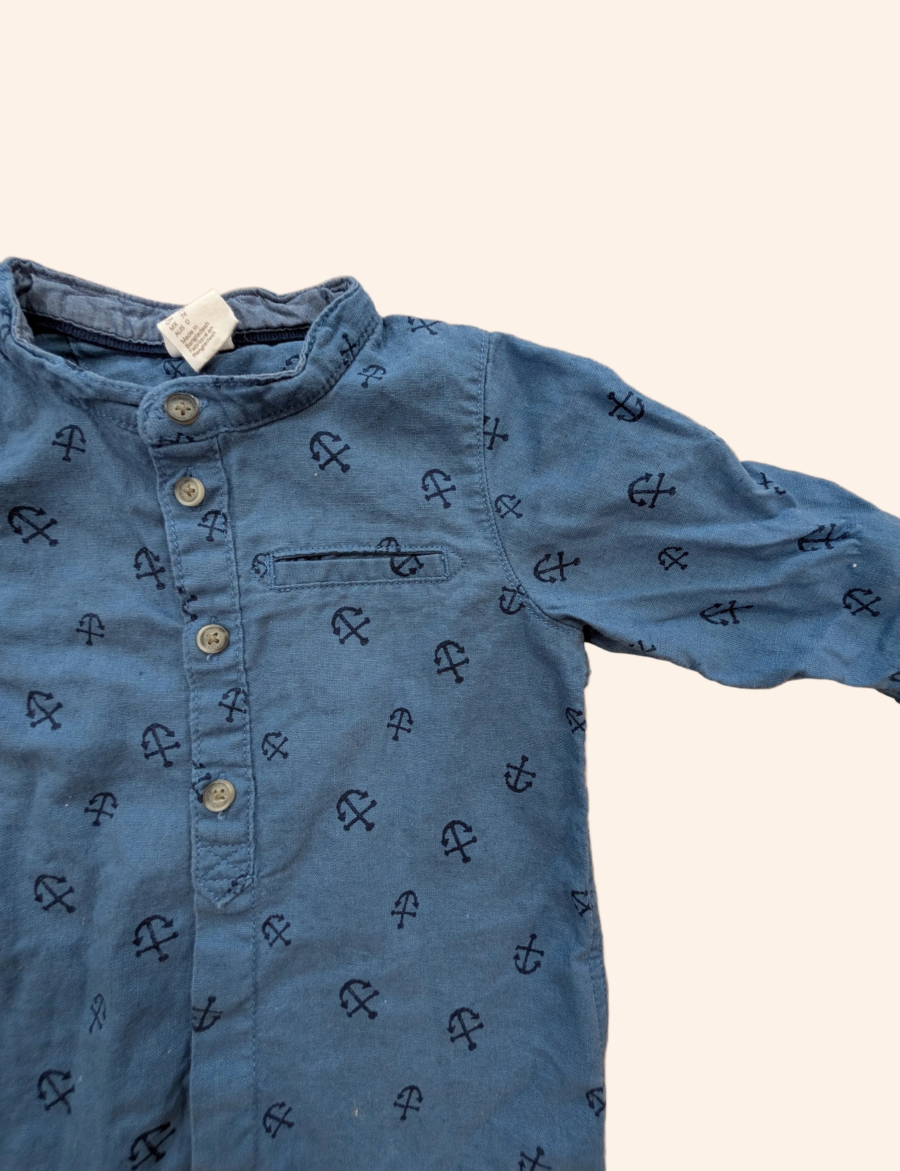 Collarless Anchor Shirt. 6-9M